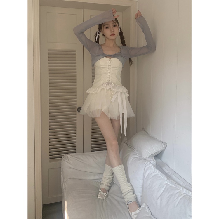 ♠◇Suhao putih manis babes renda kamisol wanita musim panas rasa desain gaya balet seksi pendek top crop top sexy tank top wanita motif