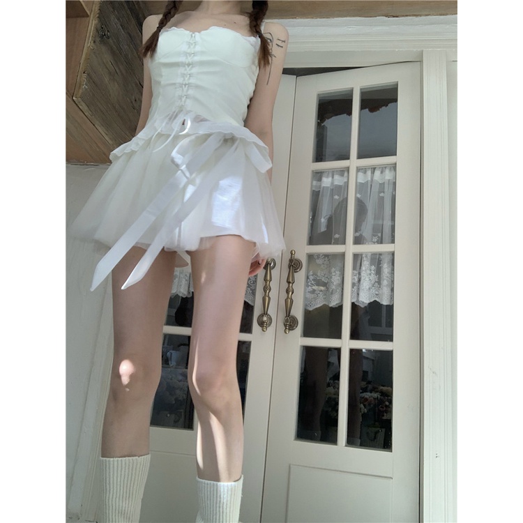 Pakaian Wanita > Atasan > Tanktop & Kamisol > ♠◇Suhao putih manis babes renda kamisol wanita musim panas rasa desain gaya balet seksi pendek top crop top sexy tank top wanita motif
