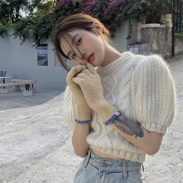 Detail Suhao setelan dua potong desain musim dingin feminin terlihat tipis engah lengan twist lengan pendek sweater + disikat berleher tinggi bottoming t-shirt