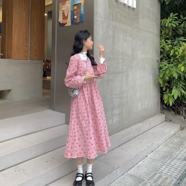 Pakaian Wanita > Set > Set Wanita > Suhao setelan jas dua potong wanita gaya Korea chic trendi kerah persegi retro lembut tali bunga musim gugur dan musim dingin semua pertandingan gaun lengan panjang