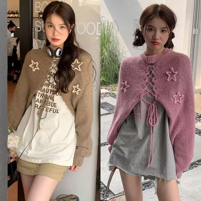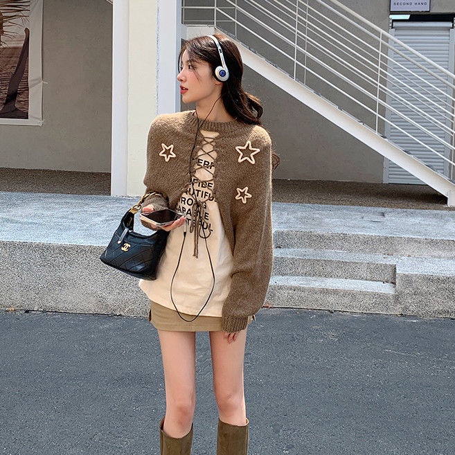 Pakaian Wanita > Set > Set Wanita > Suhao setelan jas wanita 7LOMEWE pullover selendang rajutan sweater surat T-shirt dua potong set 2022 musim gugur baru