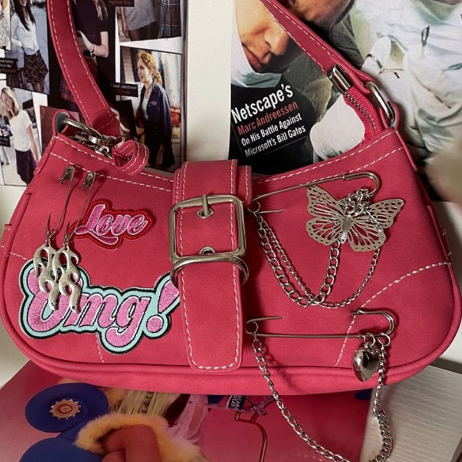 Tas Wanita > Tas Selempang & Bahu Wanita > Suhao Sunlight Desires Asli Y2K Manis dan Keren Tas Wanita Rantai Niche Millennial Hot Gadis Selempang Portabel Ketiak Merah Muda Manis dan Pedas Tas