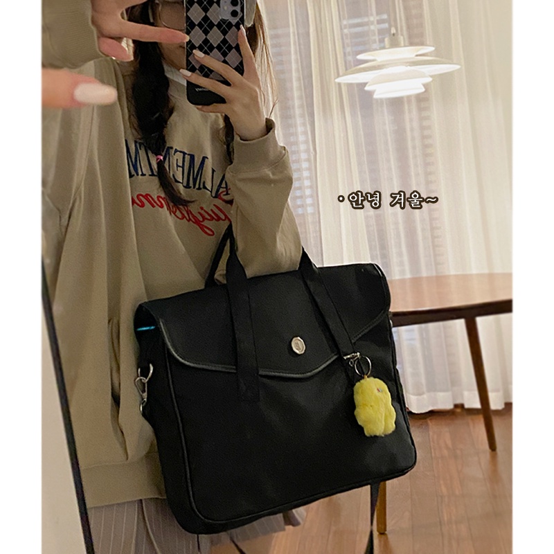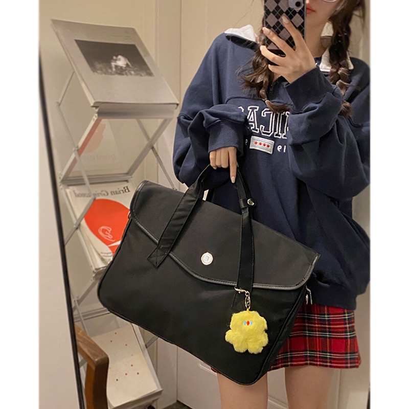 Suhao Tas kerja nilon wanita 2022 fashion trendi baru tas jinjing portabel kelas mahasiswa tas messenger berkapasitas besar