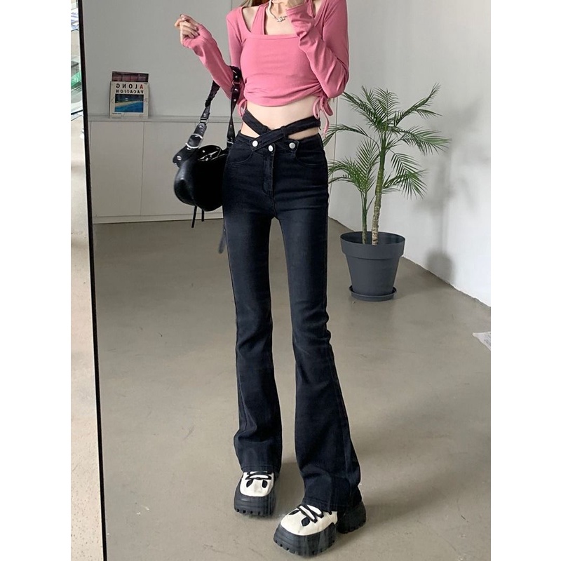 Pakaian Wanita > Denim > Celana Panjang Jeans > Suhao Ukuran Besar Lemak MM Hitam Pinggang Tinggi Celana Jeans Wanita Baru Rasa Desain Elastis Micro-Bell Bawah celana Mengepel Celana Wanita