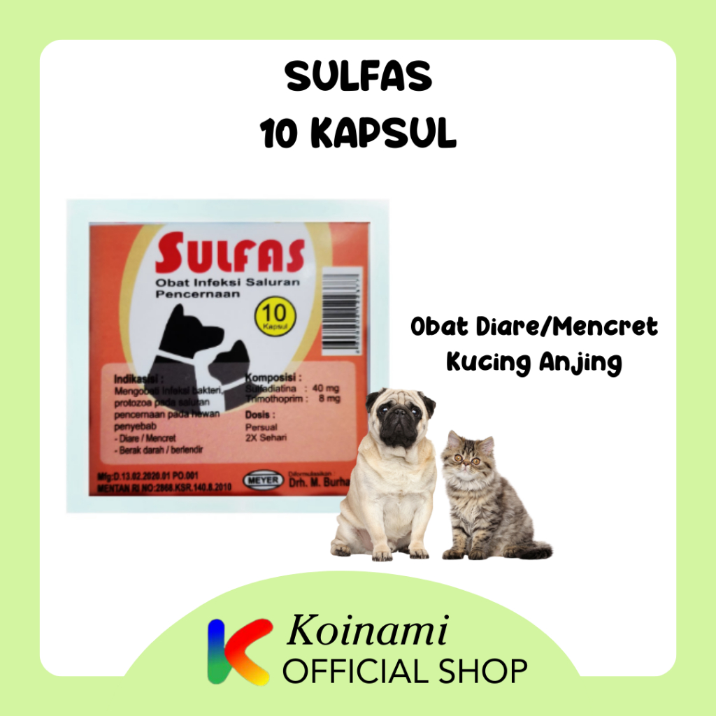 Sulfas 10 Kapsul / Obat Diare Kucing Anjing / Obat Mencret Kucing Anjing / BTM