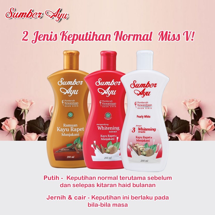 SUMBER AYU PEARLY WHITE TRIPLE WHITENING Rasakan manfaat terbaik sumber ayu pembersih kewanitaaan pearly white dengan triple whitening ektract yang telah disempurnakan, mengandung bahan alami terbaik : ektrak bengkoang, liorice susu serta kayu rapet manjakani & daun sirih yang bermanfaat : 1. Membantu kulit disekitar area v tampak cerah dengan lebih optimal terutama didekitar pangkal paha 2. Membersihkan area kewanitaan, mengurangi bau tak sedap sekaligus membantu memeliharanya tetap terasa lembut