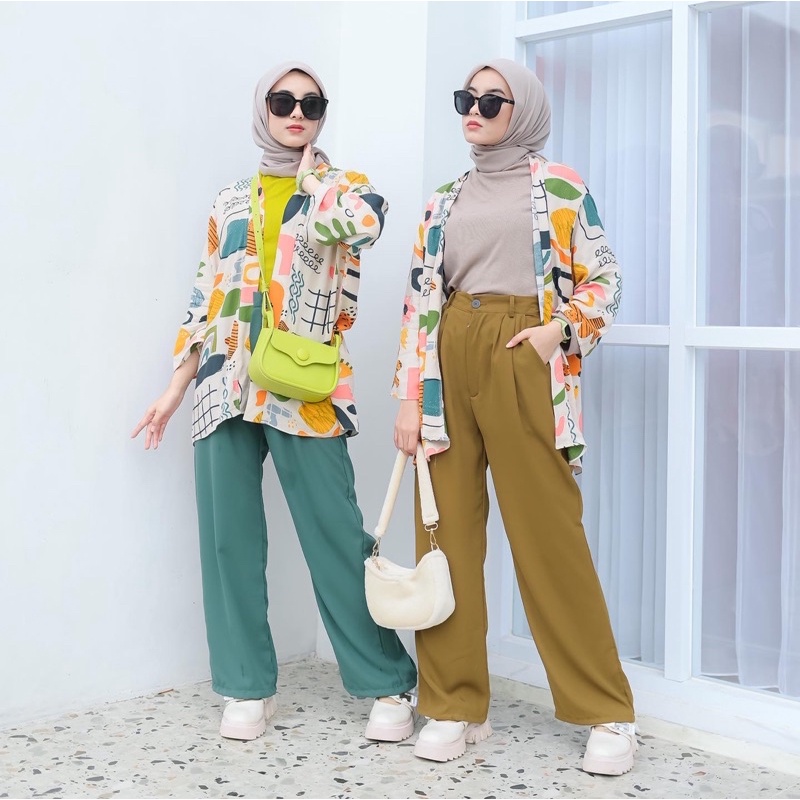 Ukurannya oversize panjang outer nya 65 cm cakeppp banget bestie , makin matchy kalo kamu pake kullot pants MHILLY nya rere 🥰😍