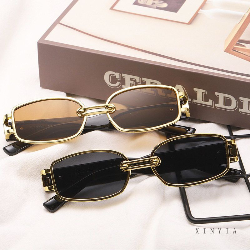 Aksesoris Fashion > Kacamata & Aksesoris > Kacamata Hitam > sunglasses rectangle shape black tea gold retro kacamata hitam elegan masa kini