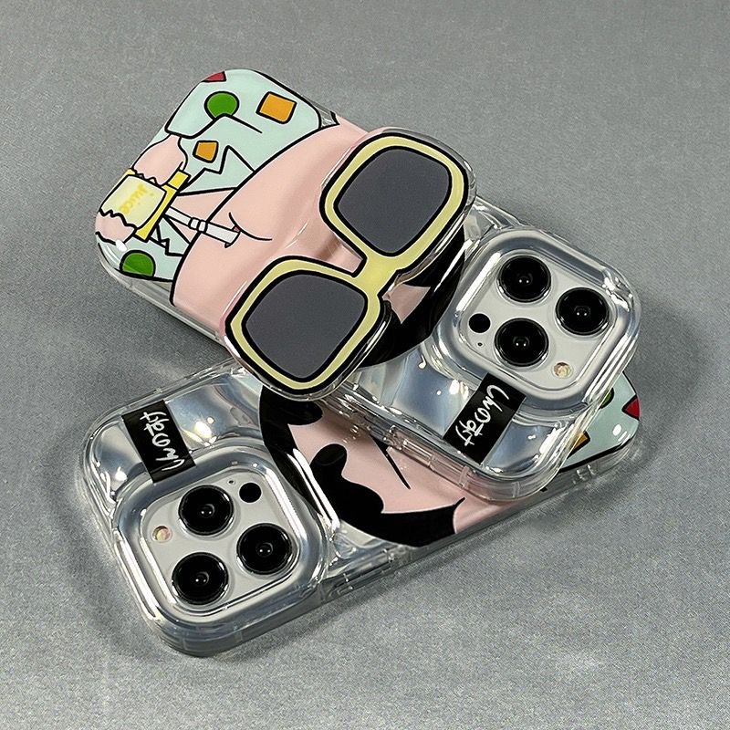 【Sunglasses Shin-chan】Cool Laser Wave Gradient Silver Airbag SoftCase IPhone 11 12 13 14 Pro Max X XR XS MAX 14 Plus Protect Case girl women's Fashion Cute Phone Case Special function:laser design, color is different under different light.Stereoscopic Sunglasses Design