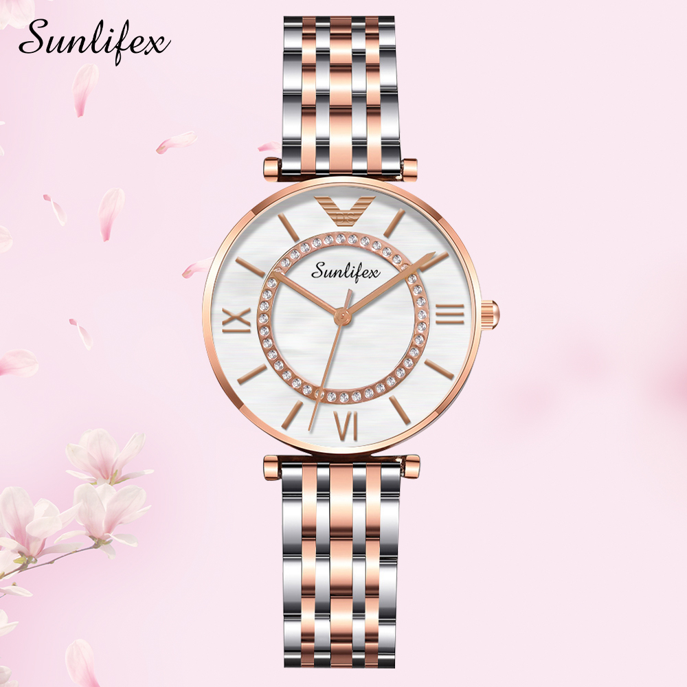 Detail SUNLIFEX Jam Tangan Wanita Original Berlian Putaran Dial Tampilan Jam Tangan Wanita Anti Air Kuarsa Tali Stainless Steel Mode Bisnis Jam Tangan Cewek