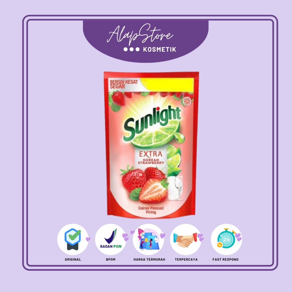 Sunlight Sabun Cuci Piring Cair Korean Strawberry Pouch 560 ml, terinspirasi dari segarnya strawberry dari Korea. Diformulasikan dengan ekstrak jeruk nipis asli, tangguh bersihkan lemak membandel dan menghilangkan bau tak sedap secara menyeluruh dengan keharuman strawberry yang lembut menyegarkan.