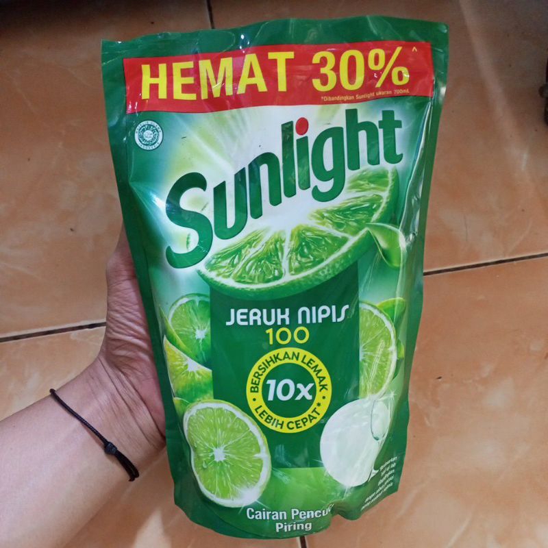 SUNLIGHT Sabun Cuci Piring Lime Refill 755ml SUNLIGHT Sabun Cuci Piring Lime merupakan cairan pencuci piring dengan kekuatan lebih dari 100 jeruk nipis. Dibuat dengan ekstrak jeruk nipis asli dan paduan garam mineral alami yang mampu menghilangkan lemak membandel & menghilangkan bakteri. Formula barunya mampu membersihkan lemak membandel 5x lebih cepat, bahkan pada piring atau alat memasak berbahan plastik sekalipun, serta juga lembut di tangan. Setiap tetesan formula dapat menghilangkan kotoran berlemak dan memberikan hasil bersih mengkilap.