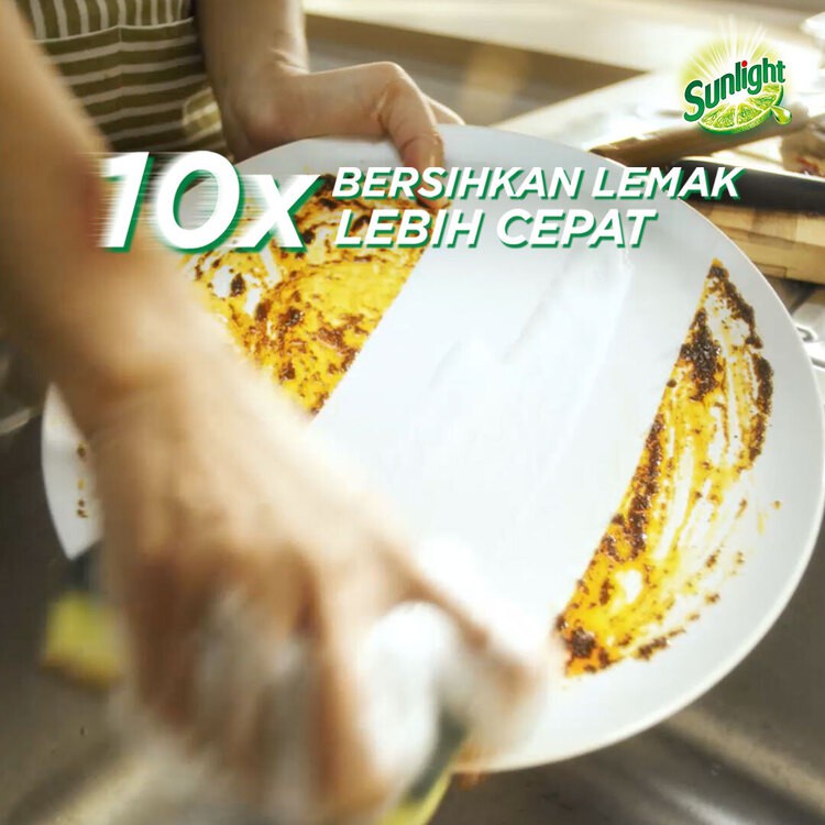 Sunlight Jeruk Nipis 100 BARU, mampu menghilangkan lemak dengan kekuatan 100 jeruk nipis di tiap kemasannya, secara aktif mengangkat dan menghilangkan lemak membandel, dan juga membersihkan dengan cepat berkat teknologi baru Cepat Bilas!