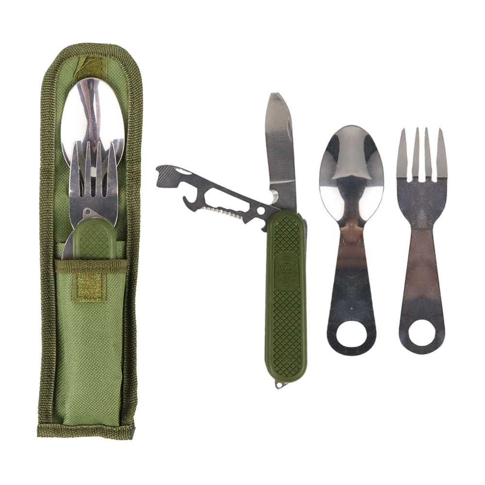 Anda akan mendapatkan set peralatan yang dapat digunakan untuk menyantap hidangan pada saat berpetualang atau berkemah. Alat ini terdiri dari sendok, garpu, pisau, pembuka botol, dan kunci pas. Alat ini terbuat dari material stainless steel sehingga sangat kokoh dan cocok untuk melengkapi petualangan Anda. Fitur Bahan Stainless Steel Set peralatan ini terbuat dari bahan material stainless steel berkualitas yang tidak mudah berkarat. Khusus di bagian pisau terdapat gagang yang terbuat dari plastik, sehingga sangat awet untuk penggunaan jangka panjang. Mudah Dibersihkan Set peralatan ini sangat mudah untuk dibersihkan kembali setelah penggunaan menggunakan air. Anda dapat menggunakan kembali peralatan ini setelah dibersihkan atau menyimpannya ke dalam kantong khusus penyimpanannya. Mudah Dibawa Berkat kantong khusus, Anda dapat membawa seluruh peralatan ini dengan mudah dalam satu kesatuan. Mudah dibawa dan dicari saat dibutuhkan.