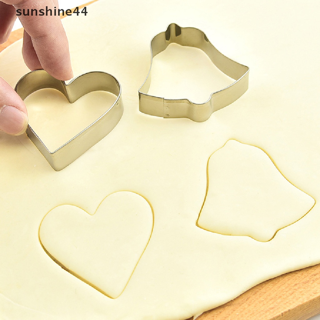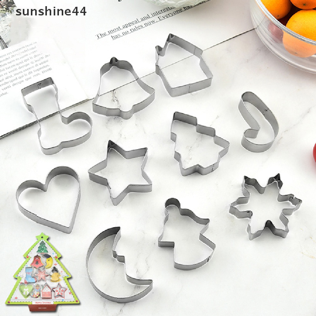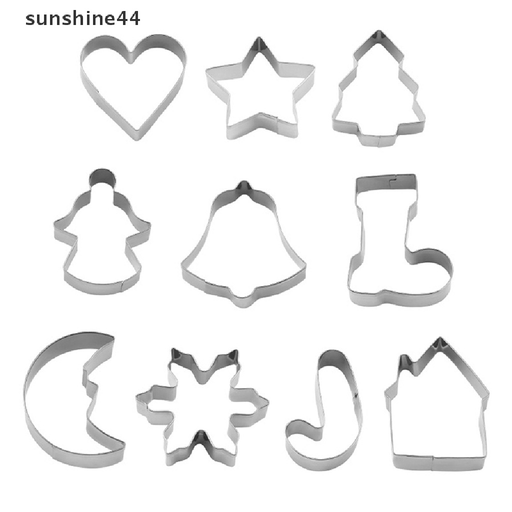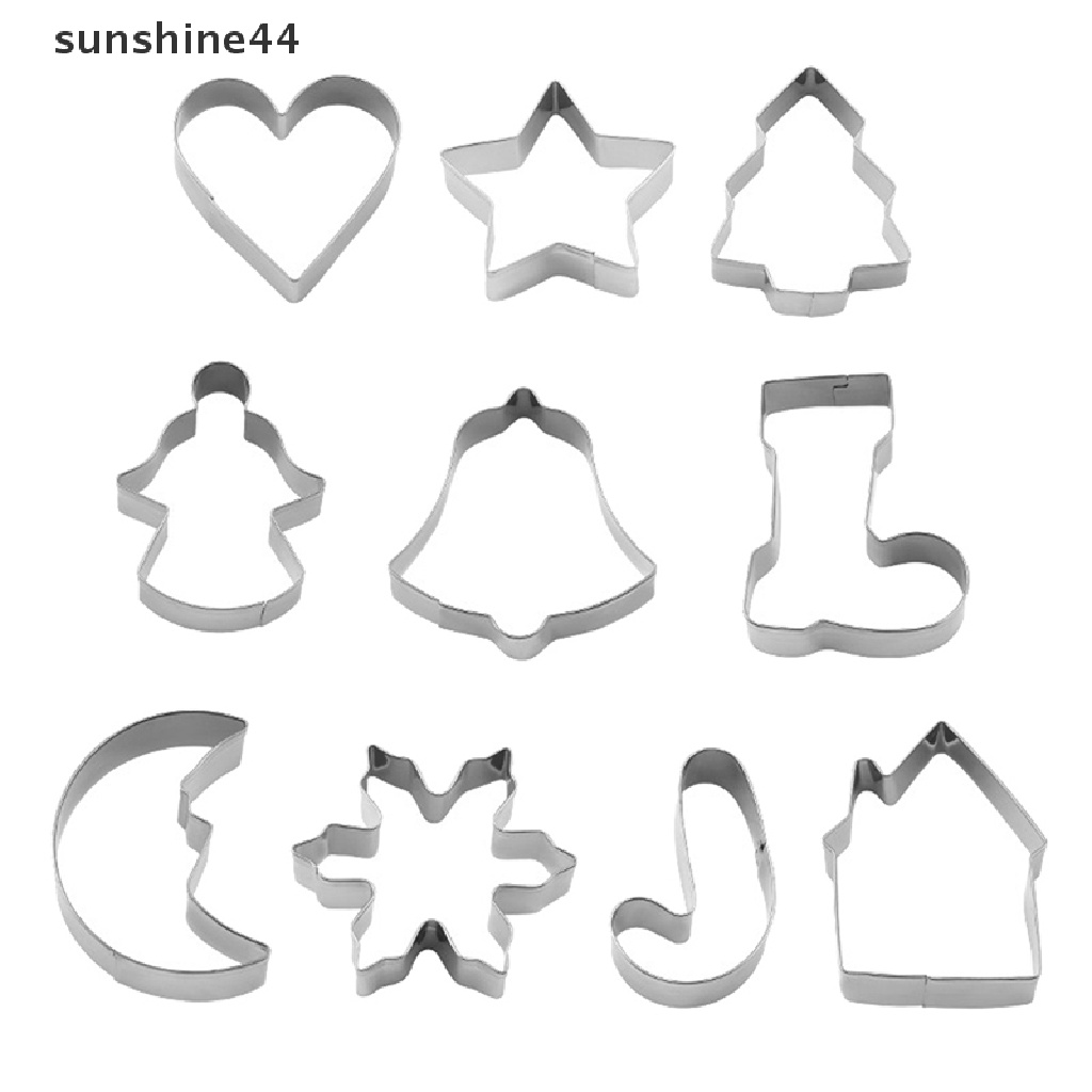 Detail Sunshine 10Pcs/Set Natal Cookie Cutter 3D Metal Xmas Kue Cookie Cetakan Dekorasi.