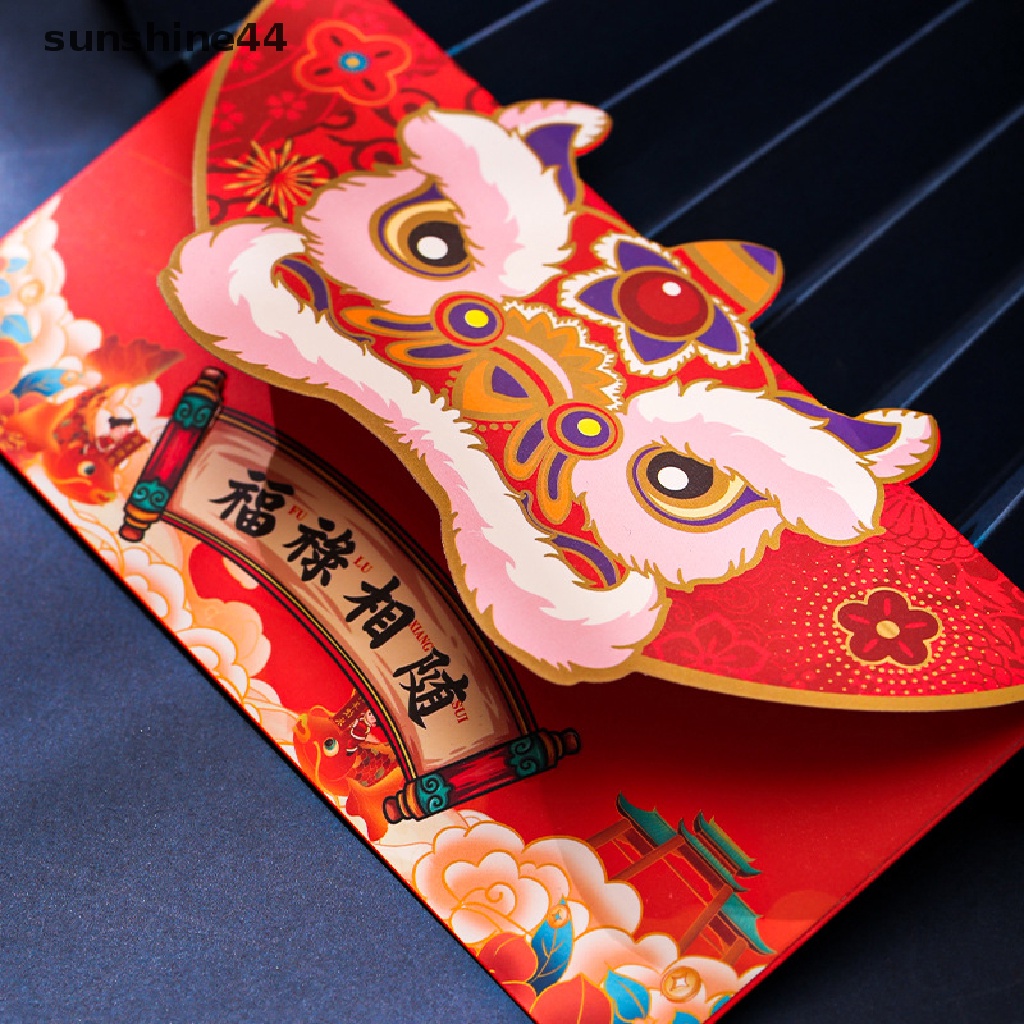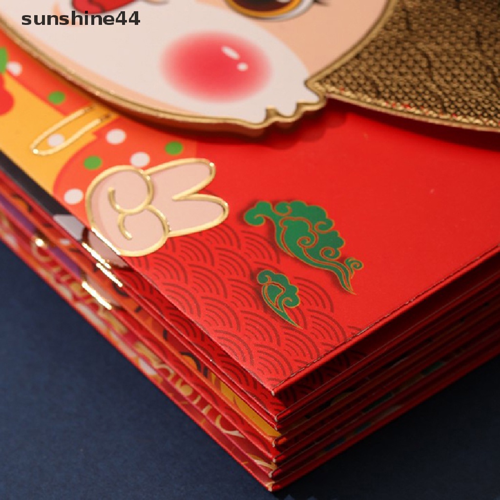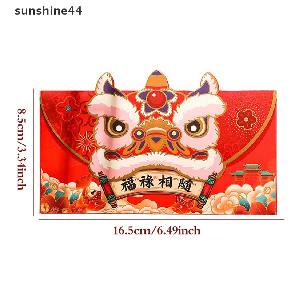 Sunshine 4PCS Amplop Merah Imlek Amplop Saku Merah Chinese Red Packet Hong Bao Amplop Uang Keberuntungan.