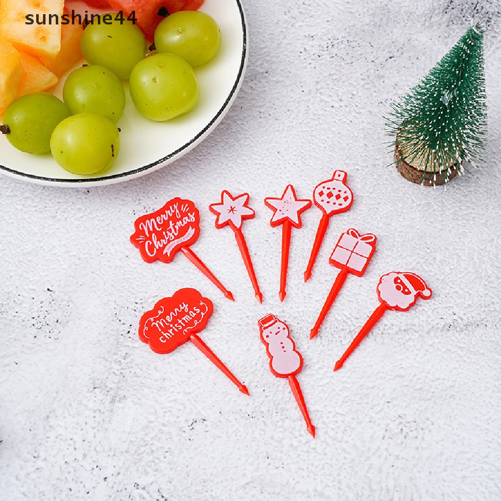Sunshine 8pcs / set Garpu Buah / Kue / Snack / Dessert Desain Kartun Natal Untuk Anak