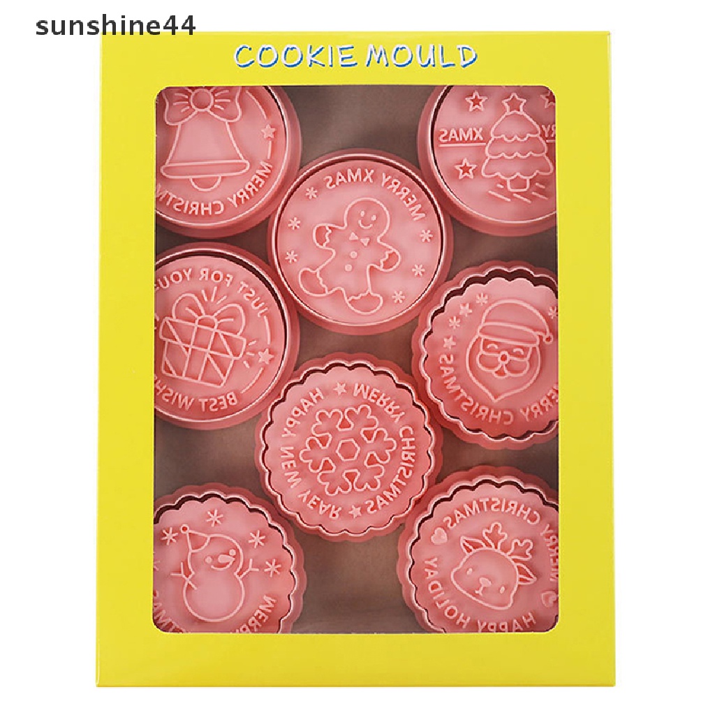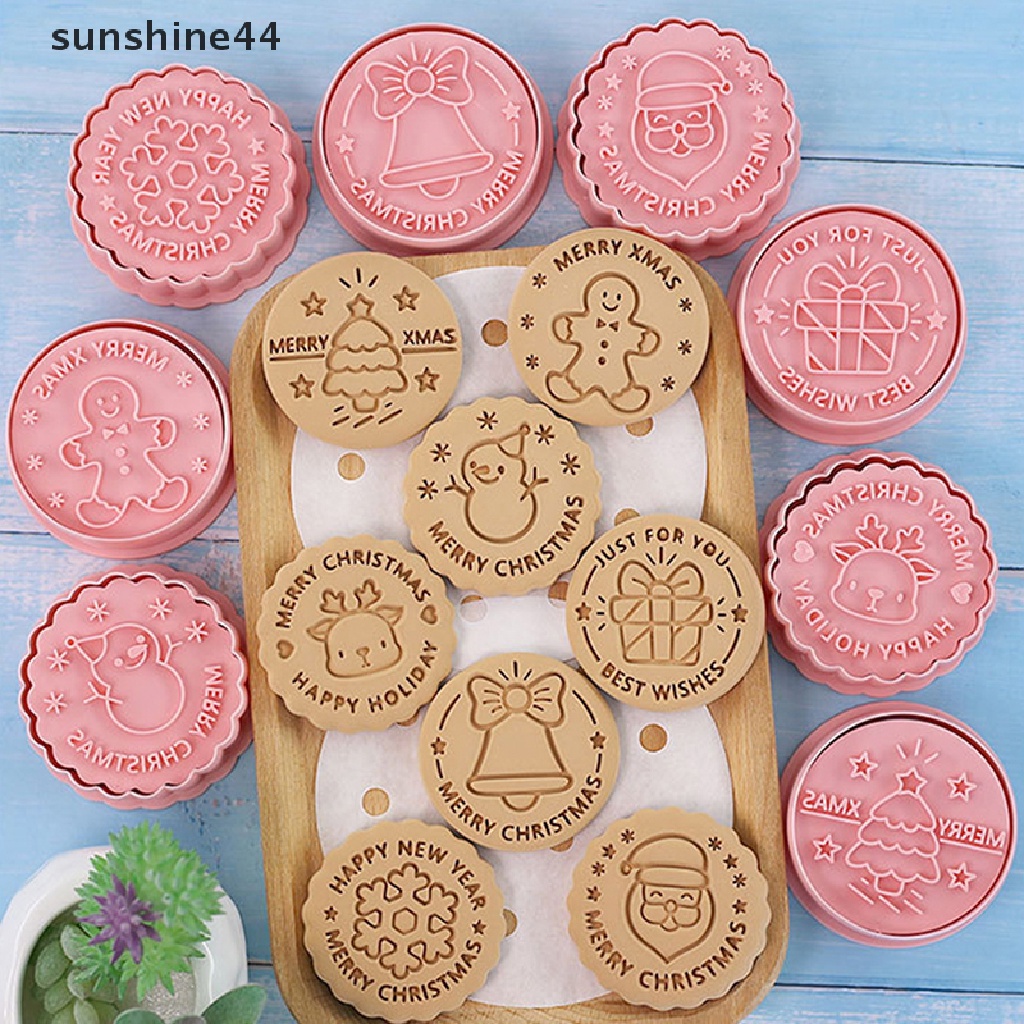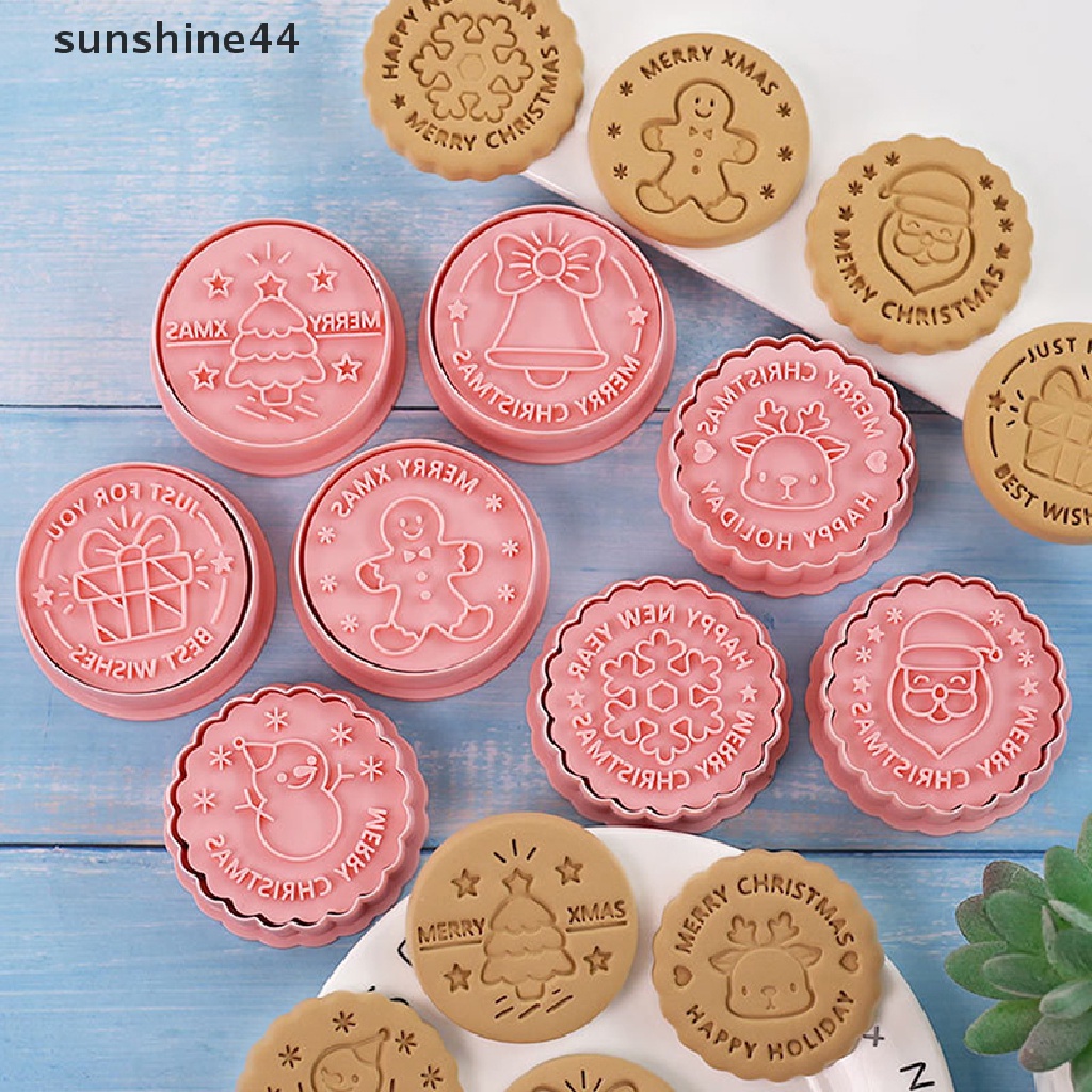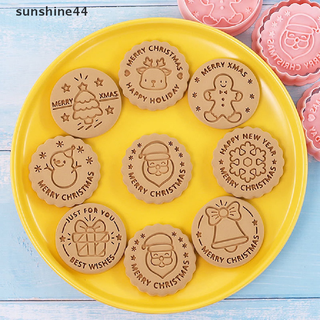 Detail Sunshine 8pcs/set Pemotong Kue Kering Cetakan Biskuit Plastik Tema Natal Kartun Dapat Ditekan.