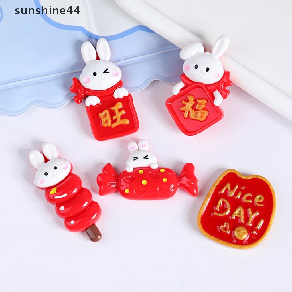 Sunshine Kartun Kelinci Memakai Tahun Baru Cina Merah Pakaian Pesona Hewan Lucu Liontin Flatback Resin DIY Anting-Anting Membuat Perhiasan Craft.