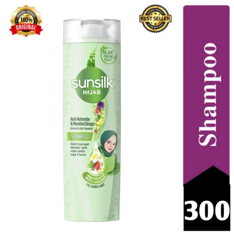 Shampoo Sunsilk Hijab Anti Ketombe dan Menthol Dingin kini hadir dengan formula 100% Natural^ Activ-Infusion, kombinasi dari bahan-bahan alami yang mampu membersihkan ketombe* gatal di balik Hijab dengan lembut dan efektif mencegahnya datang kembali**. Rambut segar & harum tahan lama hingga 48 jam. Produk perawatan rambut Shampoo Sunsilk Hijab Anti Ketombe dan Menthol Dingin mengandung tiga bahan utama yaitu:
