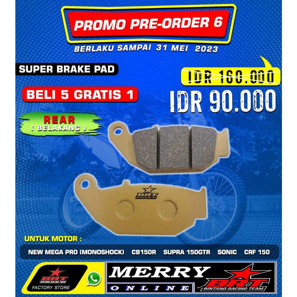 Super Brake Pad BRT Kampas Rem Front (Depan) Rear (Belakang) New Megapro Mono CB150R GTR Sonic CRF 150 Satria F 150 Shogun 125 SP Supra X125 BladeSuper Brake Pad BRT Kampas Rem Front (Depan) Rear (Belakang) New Megapro Mono CB150R GTR Sonic CRF 150 Satria F 150 Shogun 125 SP Supra X125 BladeSuper Brake Pad BRT Kampas Rem Front (Depan) Rear (Belakang) New Megapro Mono CB150R GTR Sonic CRF 150 Satria F 150 Shogun 125 SP Supra X125 Blade