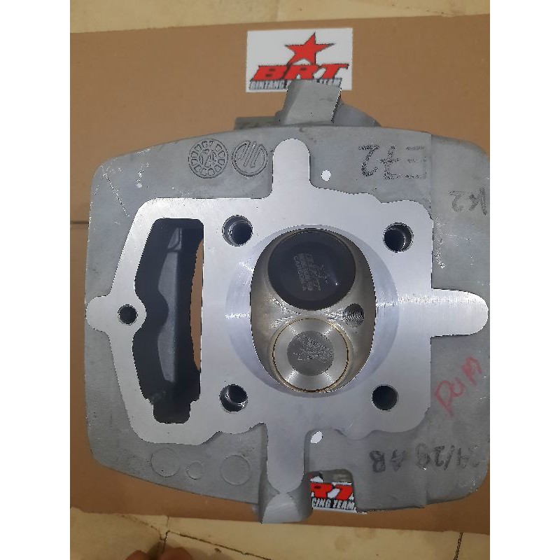 Paket silinder head ini terdiri dari : • Head berdiameter klep 34/29mm berbahan albronze dan sudah porting CNC • Per klep BRT • Retainer set (kuku klep)