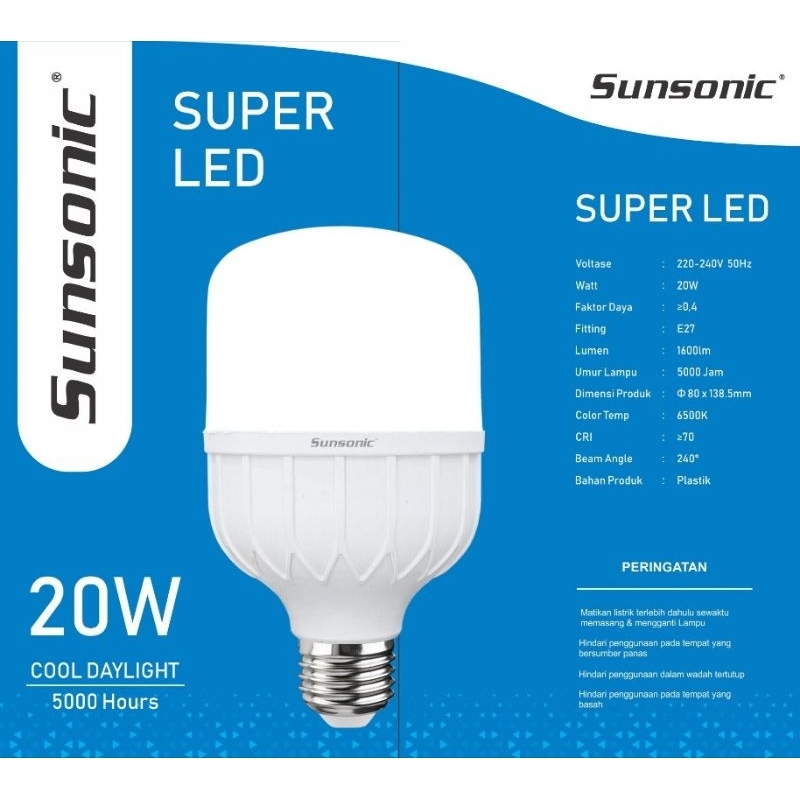 Lampu Led 20 Watt Sunsonic 20w Kapsul Tabung 20W Putih Murah SNI