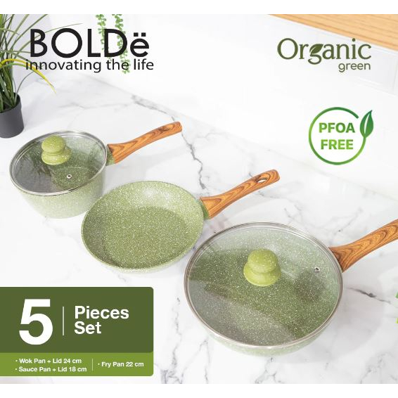 Detail Super Pan Set BOLDe ECO GREEN panci set 3 pieces Green cookware