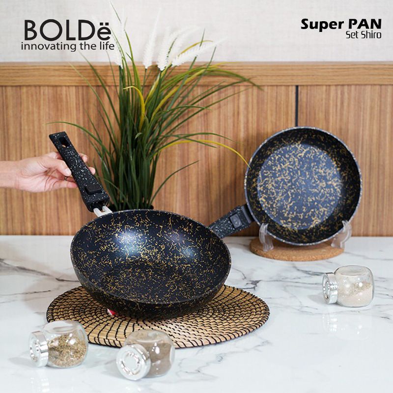 BOLDe Super Pan Set Shiro adalah Pan dengan detachable handle yang ramah lingkungan, berlapis granit, dan memiliki teknologi Induction dan Vitroceramic yang aman dari toxic, anti lengket, dan cocok dengan berbagai jenis kompor modern. Desain marble yang unik cocok untuk menghiasi rumah anda sehingga tampilan rumah anda lebih estetik
