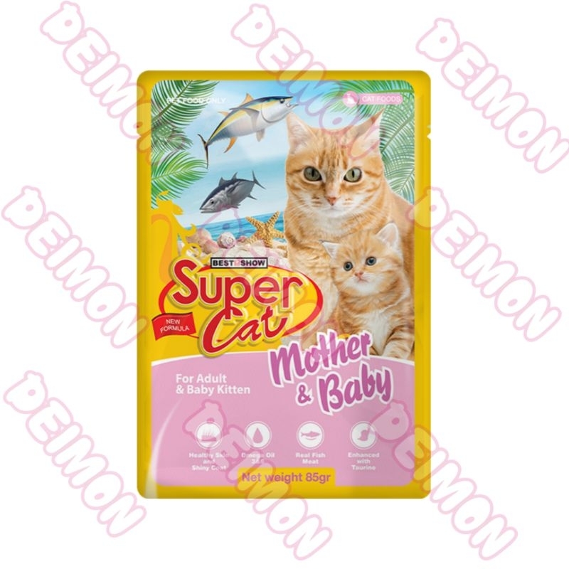 Keunggulan super cat mother & baby: Mendukung sistem kekebalan tubuh Menambah nafsu makan kucing Meningkatkan kesehatan pencernaan Mendukung proses menyusui induk kucing