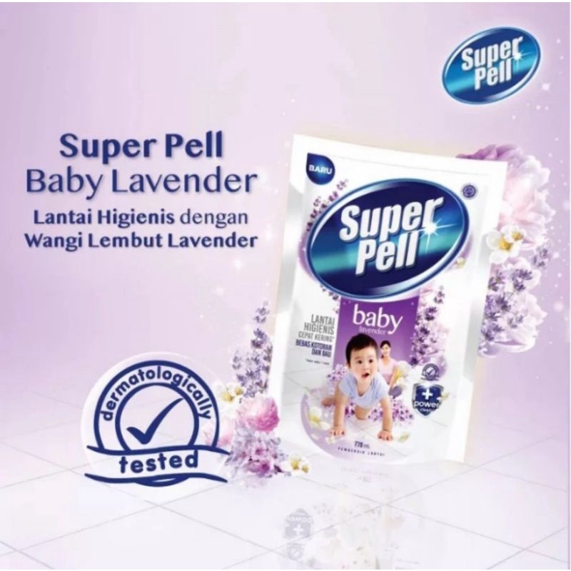 SUPER PELL Baby Lavender Pouch 770ml Twinpack adalah pembersih lantai dengan aroma bunga yang menyegarkan dan tahan lama. Diformulasikan dengan clif advanced sehingga lebih efektif membunuh kuman, membuat lantai bersih, berkilau, serta bebas kuman dan debu. Lantai bersih bersinar dan wangi mewah ini juga tahan hingga 8 jam untuk rumah Anda. Momen indah bersama keluarga di lantai rumah menjadi lebih nyaman dan tak perlu khawatir akan kuman penyebab penyakit.