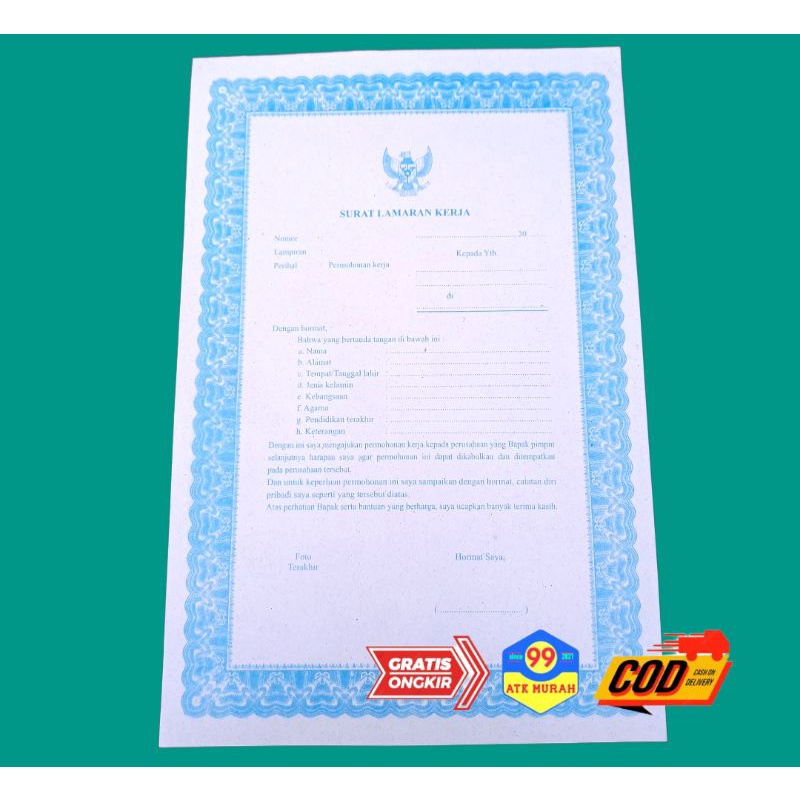 Detail: - surat lamaran kerja & daftar riwayat hidup - isi 10 lembar - ukuran kertas Folio - bahan kertas Buram putih & tebal - harga grosir