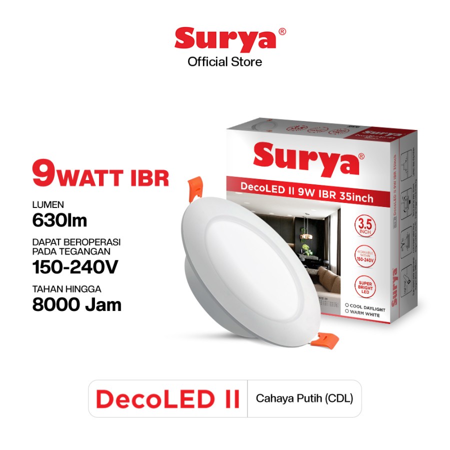 Surya Downlight LED DecoLED II 9 Watt IBR 25Inch CDL Cahaya Putih