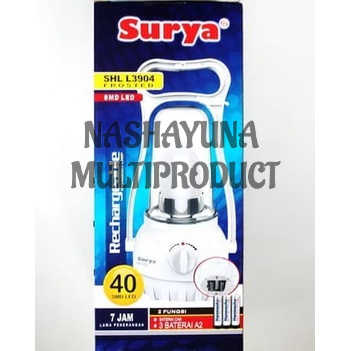 Detail Surya Lampu Emergency Petromak SHL L3904x Frosted SMD 40 LED with Dimmer Switch Rechargeable 7Hours