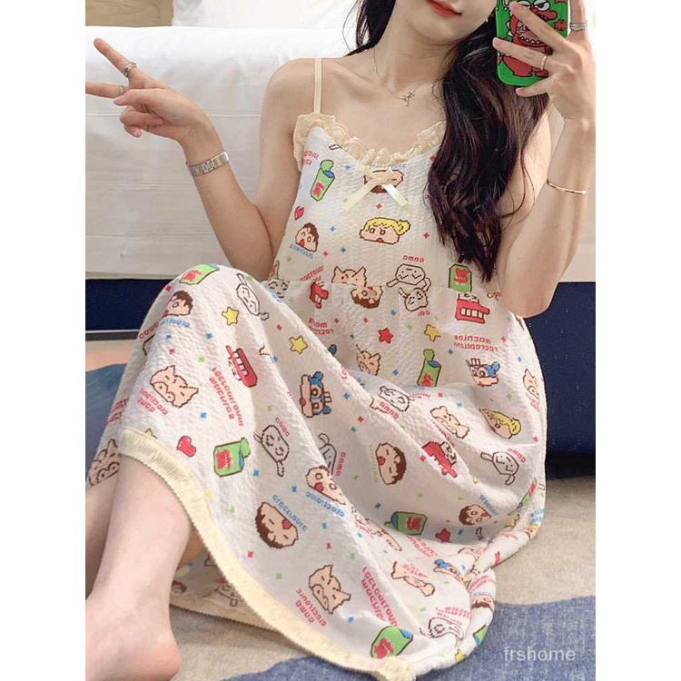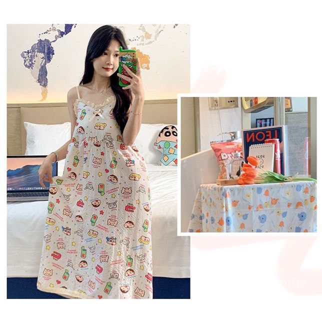 Pakaian Wanita > Pakaian Tidur & Piyama > Daster > Suspender panjang tengah baju tidur baju tidur kartun wanita piyama kartun wanita longgar pakaian ru