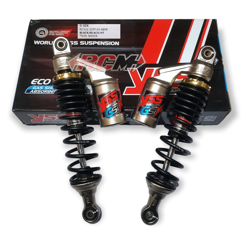 SUSPENSI SUSPENSION PEREDAM KEJUT ABSORBER SHOCKBREAKER SHOCK BREAKER SHOCK SKOK SOK BLK BLKG BELAKANG TABUNG G-SIX GSIX 320MM 320 MM MERAH RED BLACK HITAM RXKING RX KING SUPRA TIGER ORI ORIGINAL YSS