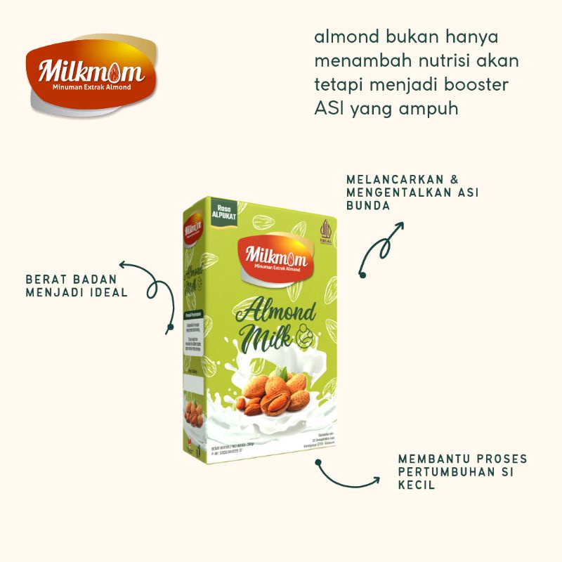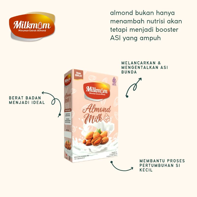 Milkmom | Almond Milk Powder with almond Dibuat dari 100% Calfornia Almonds dengan diformulasi untuk mengatasi 5 masalah ibu menyusui berikut ini: 1. ASI TIDAK LANCAR (#SolusiMILKMOM ) 2. KONSUMSI GULA BERLEBIH (#SolusiMilkmom : Rendah Gula) 3. KENAIKKAN BERAT BADAN (#SolusiMILKMOM : Tinggi Serat) 4. PENUAAN DINI PADA KULIT (#SolusiMILKMOM : Tinggi Vitamin E) 5. ALERGI SUSU SAPI (#SolusiAMILKMOM : Dairy Free)