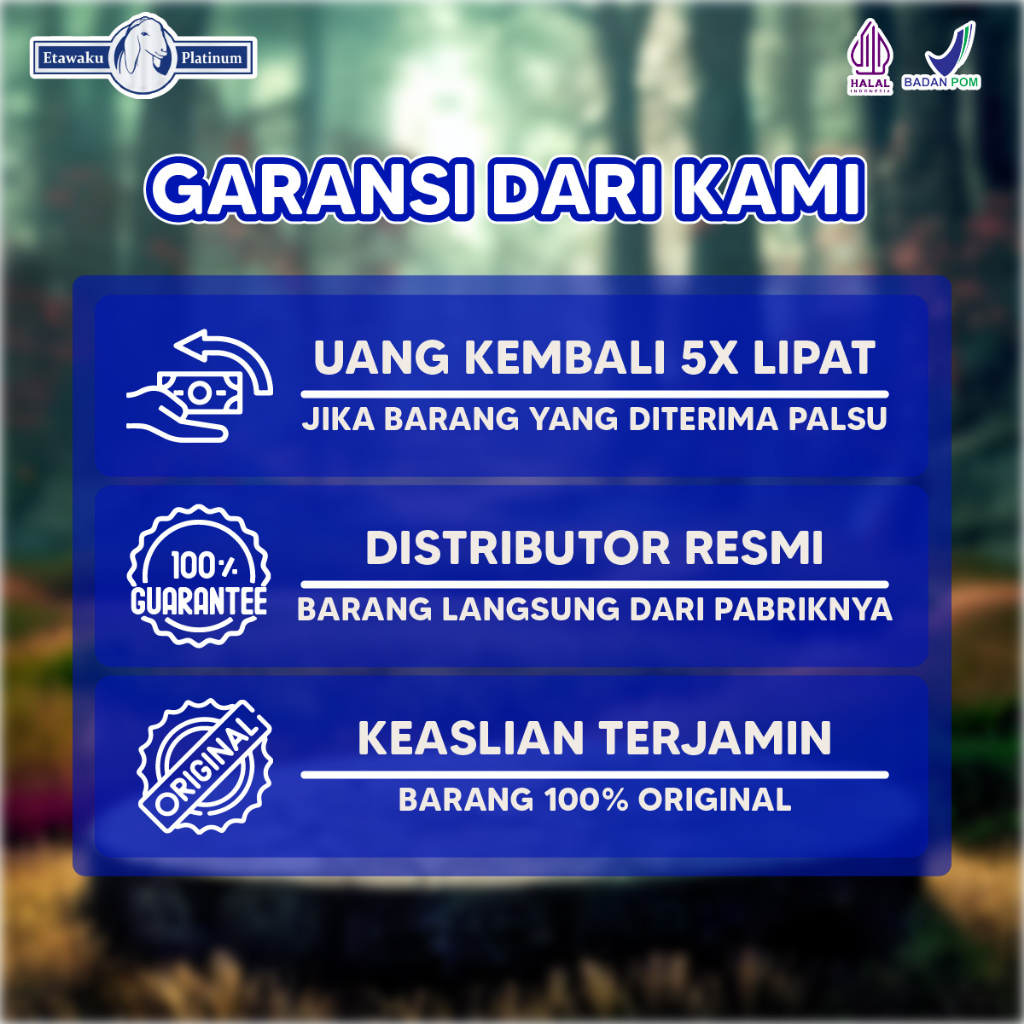 Keuntungan membeli Etawaku Platinum di Herba Famili Store : GARANSI PRODUK (gratis produk pengganti apabila produk yang diterima rusak karena kesalahan kami) ORIGINAL (garansi uang kembali jika barang palsu) KEPUASAN (admin kami siap melayani jika ada kendala) AMAN (free bubble wrap)