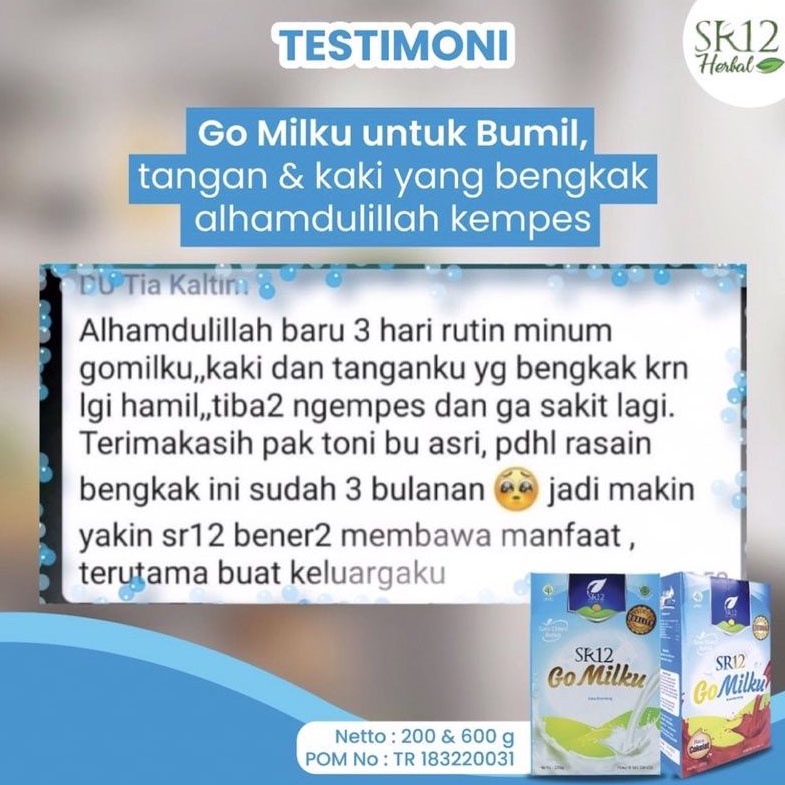 GoMilku SR12 aman dikonsumsi untuk: • Anak usia diatas 1 tahun • Dewasa hingga lanjut usia • Ibu hamil • Ibu menyusui • Penderita diabetes • Penderita hipertensi
