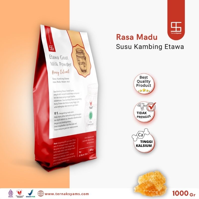 100% HALAL LPPOM 12040002540519 Premium Susu Kambing Etawa Bubuk Ternak Syams Susu Kambing Etawa Bubuk Rasa Madu Netto 1000 gram / 1 Kg Expired : 1 tahun setelah kemasan dibuka