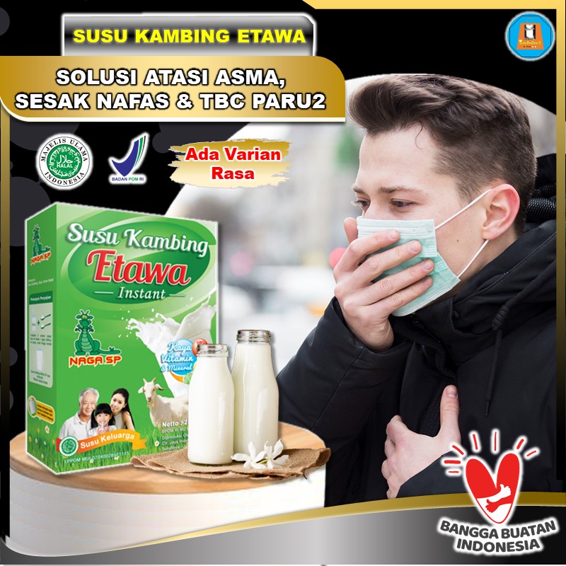 Bayangkan betapa bahagianya ketika keluarga yang anda sayangi sehat setiap hari dengan minum susu kambing etawa. Banyak orang yang sudah membuktikan manfaat kesehatan dari susu kambing etawa Naga SP. Sekarang Giliran Anda untuk membuktikan sendiri manfaat kebaikan dari susu kambing etawa Naga SP ini. --------------------------------------------------------------------------------- Kualitas terbaik di kelas susu kambing. Diproses menggunakan teknologi Low temperatur sehingga kandungan gizinya lebih terjaga. Produk terjamin keasliannya dan sudah terdaftar di Badan POM serta bersertifikasi Halal MUI dan HACCP. --------------------------------------------------------------------------------- Manfaat Susu Kambing Etawa Bubuk Naga SP Kemasan 250g : 1. Bisa mengobati pencernaan, kelebihan asam lambung (kembung), maag kronis dll. 2. Alergi pada kulit dan organ tubuh (pernapasan dan pencernaan). 3. Asma,TBC dan infeksi paru-paru akut/ menahun. 4. Kelainan fungsi ginjal (neprotic sindrom) atau infeksi,termasuk asam urat tinggi. 5. Persendian tulang seperti reumatik dan osteophorosis. 6. Stamina/daya tahan tubuh menurun atau tenaga/vitalitas kendor dan loyo. 7. Impotensi/frigiditas (gairah seksual turun). --------------------------------------------------------------------------------- Kelebihan Susu Kambing Etawa Bubuk Naga SP Kemasan 250g Dibanding Susu Kambing Lainya : 1. Bersifat alkali food atau basa sehingga sangat mudah dicerna. 2. Kandungan florine (Florine adalah mineral pelindung paru2 sehingga baik untuk penderita asma, TBC atau paru2) 10 hingga 100 x lipat dibanding susu sapi. 3. Rantai kimia protein dan lemak strukturnya pendek sehingga mudah diserap tubuh dan tidak menimbulkan alergi. 4. Mempunyai kandungan zat anti kanker (cancer). 5. Aman dikonsumsi bagi balita yang alergi terhadap susu sapi atau yang lainnya. 6. Baik dikonsumsi oleh ibu hamil terlebih tri mester ke tiga. Bayangkan betapa bahagianya ketika keluarga anda sehat setiaphari dengan minum susu kambing etawa.. --------------------------------------------------------------------------------- Aturan Minum Susu Kambing Etawa Bubuk Naga SP : Untuk Terapi Penyembuhan Penyakit : Minum susu kambing etawa ini 2 kali sehari pagi dan sore. Larutkan 1 sachet atau 2 sendok makan susu kambing Etawa Naga SP dan seduh dengan air hangat +- 200 cc air.