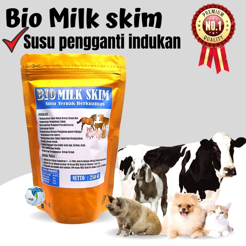 ATURAN PAKAI : 1.larutkan 1 sendok makan susu bio milk ke dalam 80ml air hangat untuk anakan kucing/anjing/kelinci 2.larutkan 100 gram Susu bio milk skim ke dalam 500ml air hangat untuk kambing/sapi/kerbau/kuda