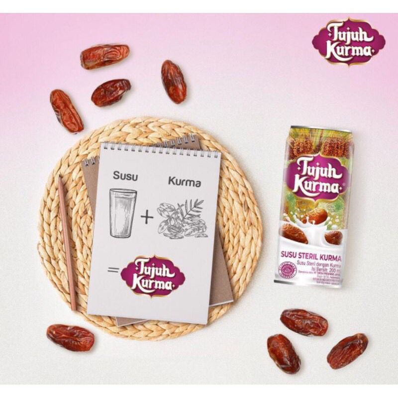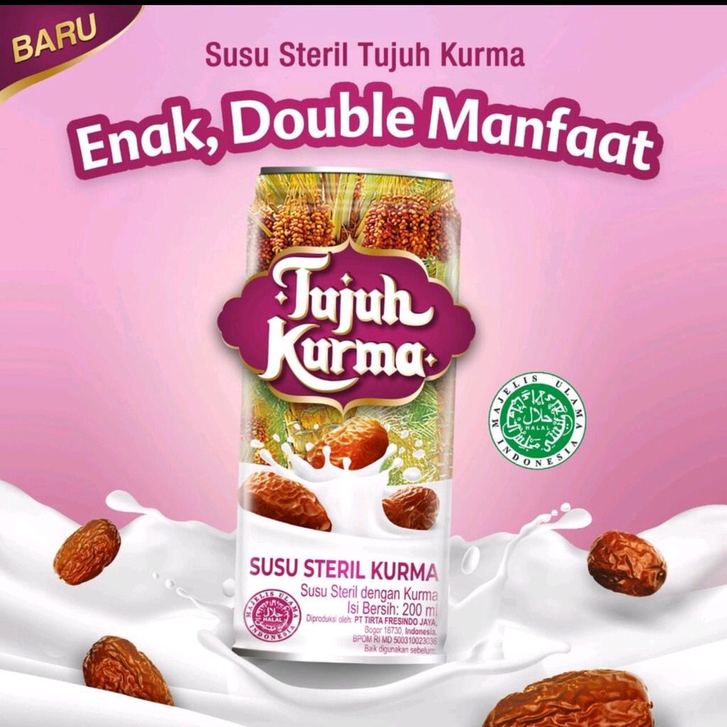 Susu Steril Tujuh Kurma merupakan susu kurma persembahan dari Mayora. Netto 200 ml. Ber BPOM dan Halal MUI