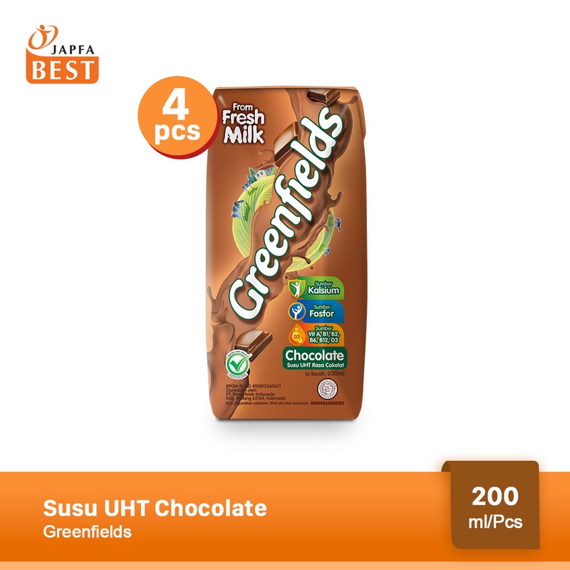 Susu UHT Chocolate Greenfields 200 ml - Isi 4 pcsSusu UHT Chocolate Greenfields 200 ml - Isi 4 pcsSusu UHT Chocolate Greenfields 200 ml - Isi 4 pcs