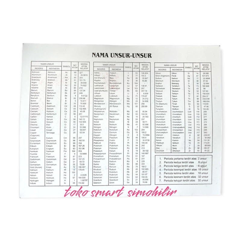 Your browser does not support the video tag.Video perkenalan produk SUSUNAN BERKALA UNSUR UNSUR KIMIA. Sumber: Shopee.
