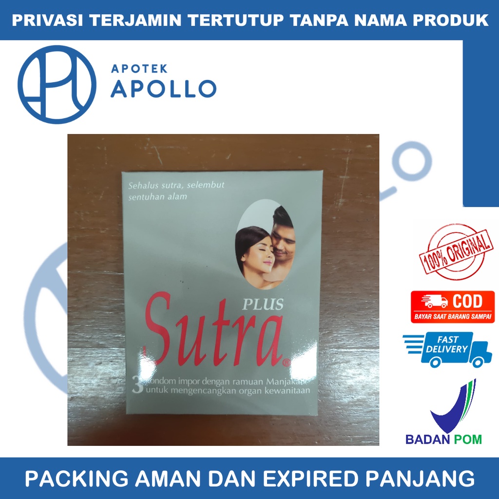 Deskripsi KONDOM SUTRA PLUS merupakan alat kontrasepsi yang di gunakan oleh pria. Indikasi Umum Alat kontrasepsi Komposisi Latex Dosis Sesuai kebutuhan. Digunakan saat berhubungan intim Aturan Pakai Digunakan pada kelamin pria saat berhubungan intim Perhatian Alat Kontrasepsi ini tidak memberikan proteksi 100% pada kehamilan, infeksi HIV, dan penyakit menular seksual. Hanya digunakan untuk 1 kali pakai Golongan Produk Alat Kesehatan & Medis Habis Pakai Kemasan Pack @ 3 pieces Manufaktur DKT International No. Registrasi Kemenkes RI: AKL 21104812840