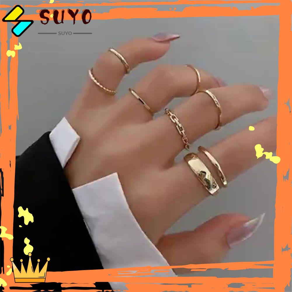 Detail Suyo 7pcs /Set Wanita Cincin Set Pesta Hadiah Pernikahan Perhiasan Fashion Bukaan Bulat