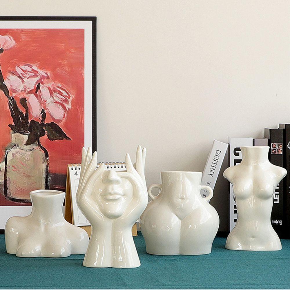 3.1 cm = 0.39 inci Sederhana Vas Wajah Vas Kepala Vas Keramik Vas Bunga Pengaturan Tubuh Seni Nordik Gaya Rumah Dekorasi Ornamen Patung Kreatif Kerajinan Tangan