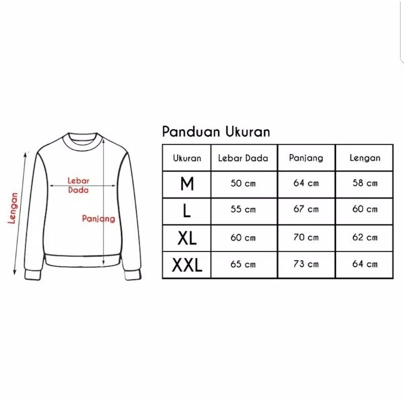 👉 M: Lebar 50 cm x Panjang 62 cm x Lengan 57 cm.