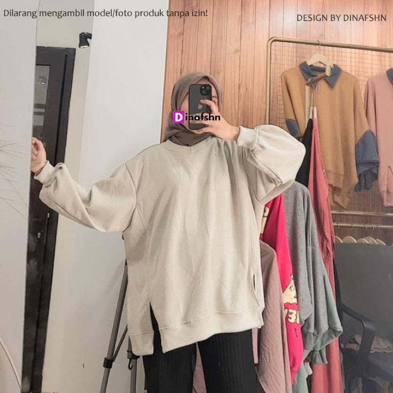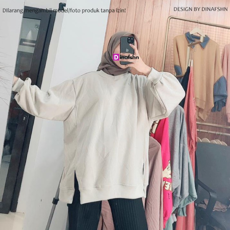 Detail SWEATER BASIC V OVERSIZE BELAH PINGGIR SWEATER WANITA OVERSIZE TANGAN BALON